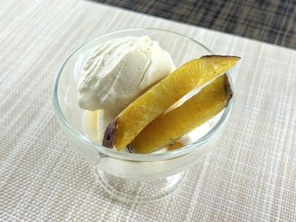 #べにはるか アイスクリーム添え 材料:◎べにはるかスティック アイスクリーム
