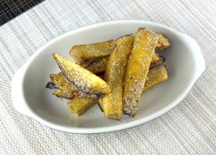 #シナモンシュガースティック 材料:◎べにはるかスティック…200g グラニュー糖…大さじ2 シナモンパウダー…小さじ1/4